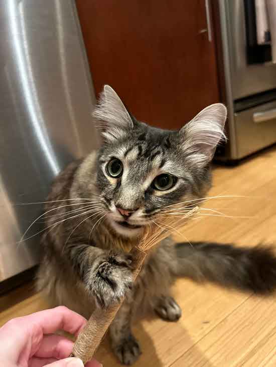 Während Katzenminze oft in Spielzeug verwendet wird, das schnell abnutzt, kommt Silvervine als natürlicher Kauartikel, der das Spiel anregt, Stress reduziert und die Zähne deiner Katze sauber hält – alles in einem.